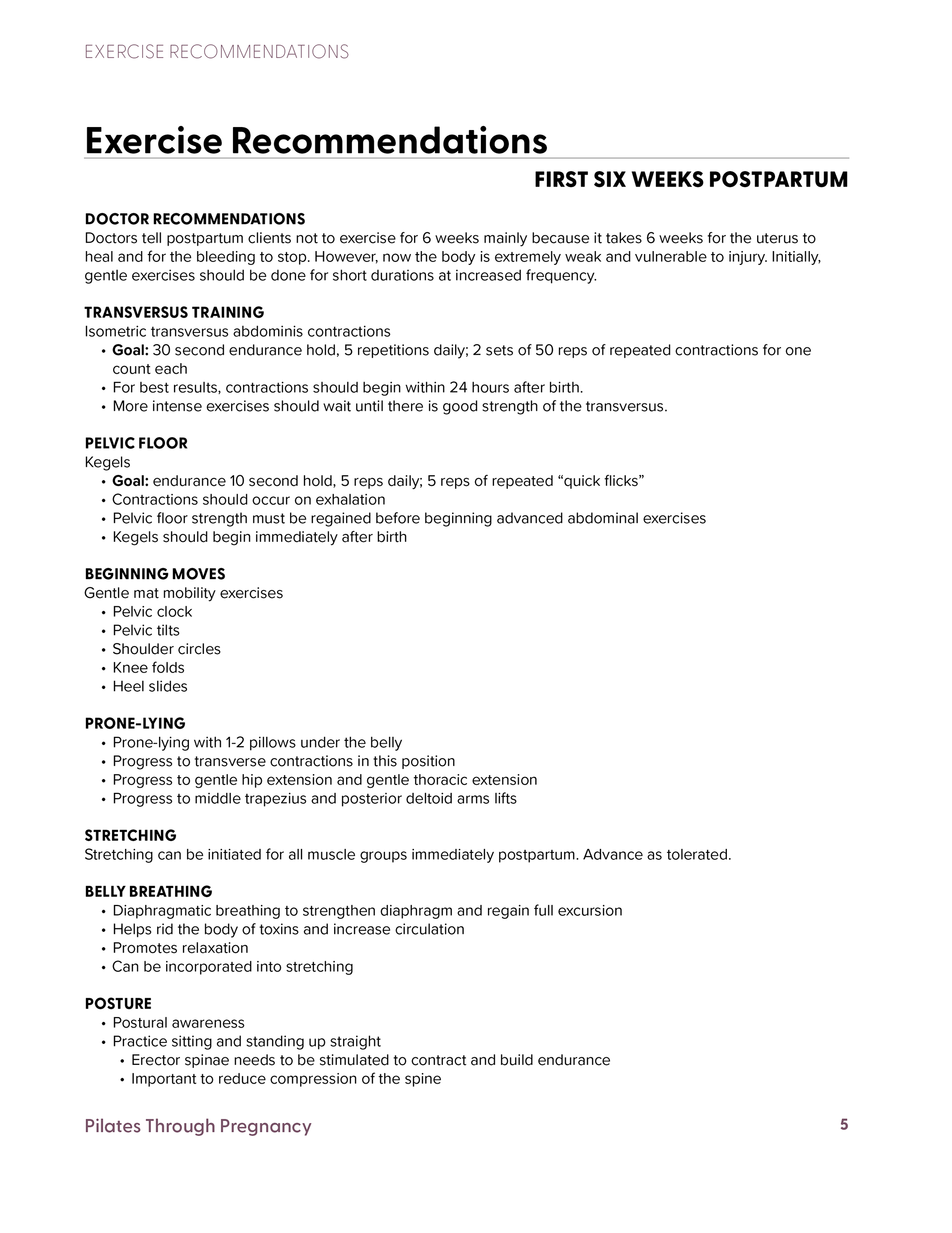 Pilates Through Pregnancy Manuals
