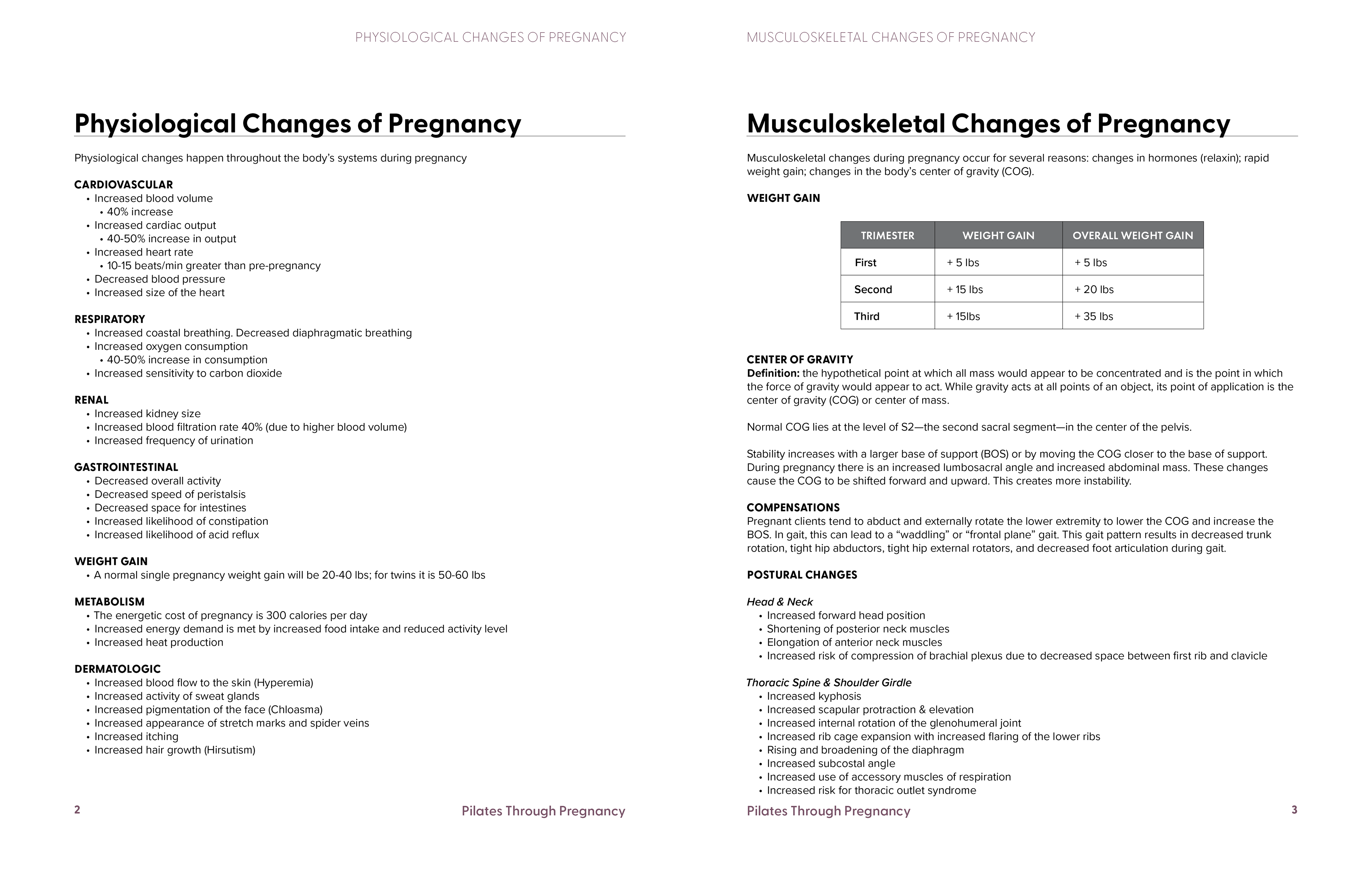 Pilates Through Pregnancy is a three-workshop series centered around pilates for the pregnant client. For the overall design the focus was on the exercises and laying out the necessary detail that would make each exercise effective for the client. Much of the text work was converting a powerpoint presentation to a written format for easier reference.